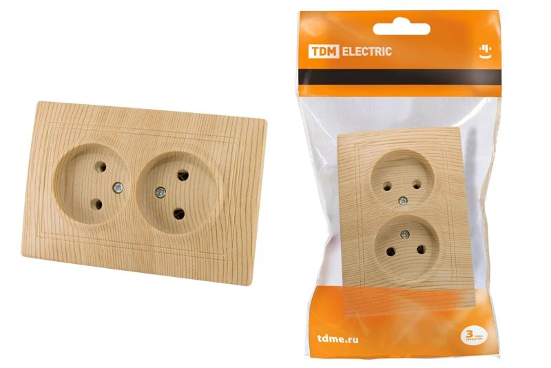 Розетка двойная 2П 10А 250В "ЭКО" (сосна) "Таймыр" TDM