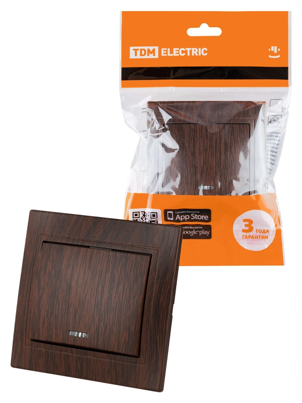 Выключатель 1 кл. с подсветкой 10А "ЭКО" (бук) "Таймыр" TDM