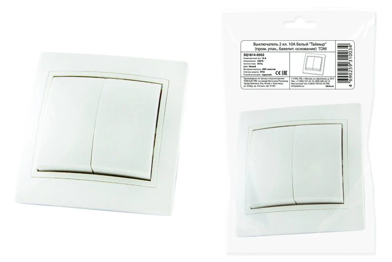 Выключатель 2 кл. 10А белый "Таймыр" (пром. упак,, бакелит. основание) TDM