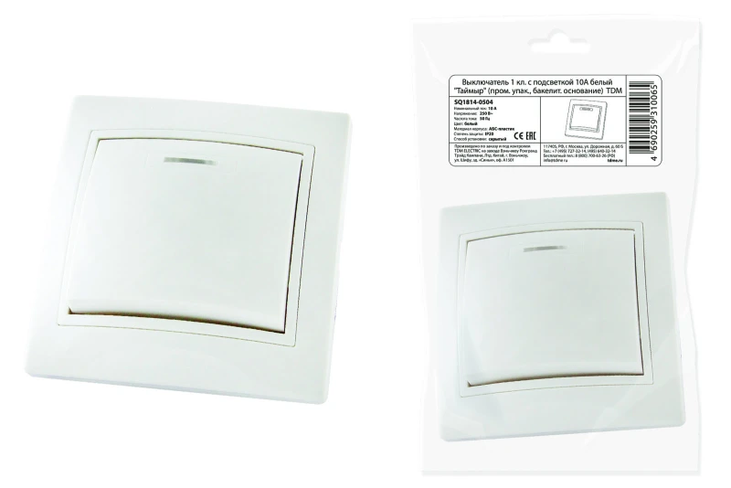 Выключатель 1 кл. с подсветкой 10А белый "Таймыр" (пром. упак., бакелит. основание) TDM