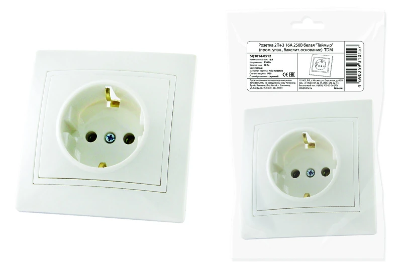 Розетка 2П+З 16А 250В белая "Таймыр" (пром. упак., бакелит. основание) TDM