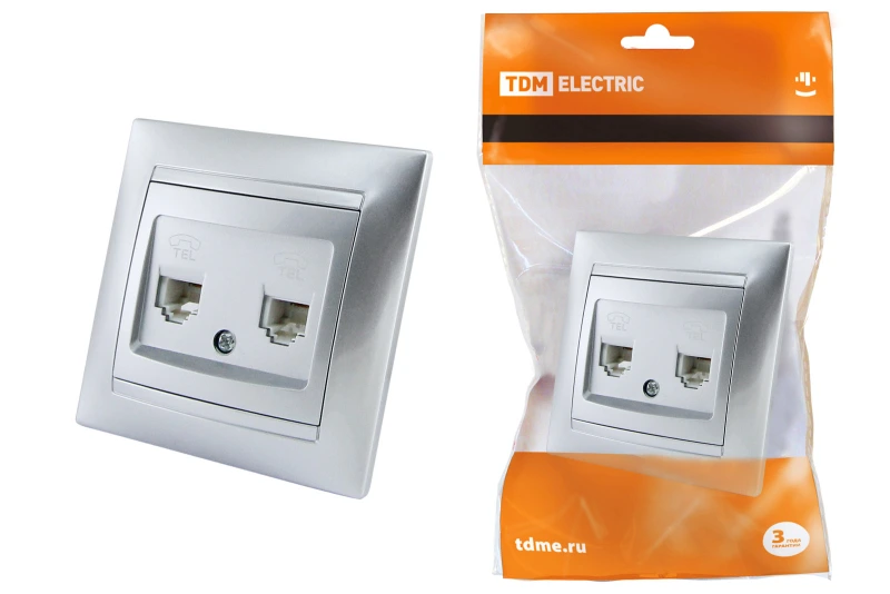 Розетка двойная телефонная RJ11 серебр. металлик "Лама" TDM
