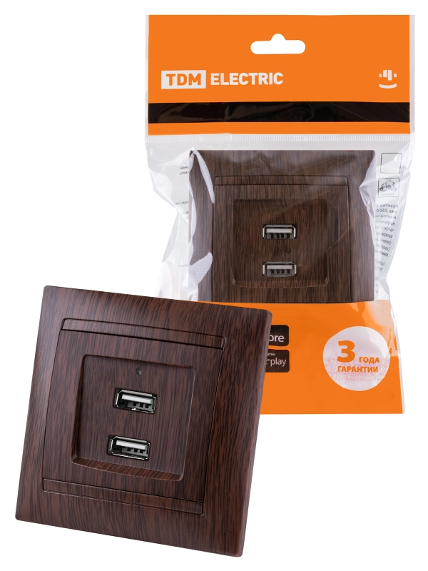 Розетка 2USB порт 2,1А 5В венге "Лама" TDM