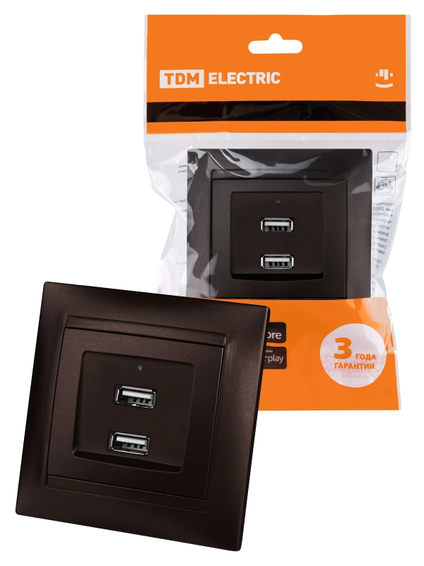 Розетка 2USB порт 2,1А 5В шоколад "Лама" TDM