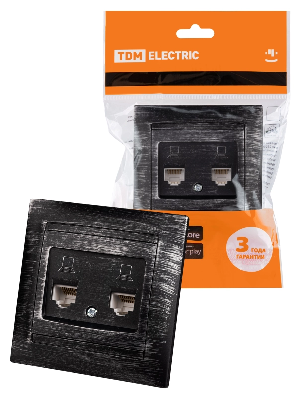 Розетка компьютерная двойная RJ45 старинное серебро "Лама" TDM