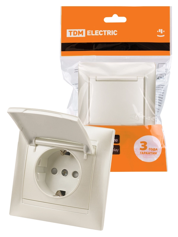 Розетка 2П+З 16А 250В IP44 с защ. шт. с крышкой перламутр "Лама" TDM