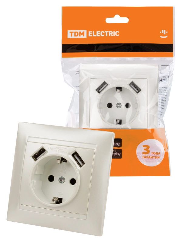 Розетка 2П+З 16А 250В + 2 USB порта 2,1А 5В перламутр "Лама" TDM