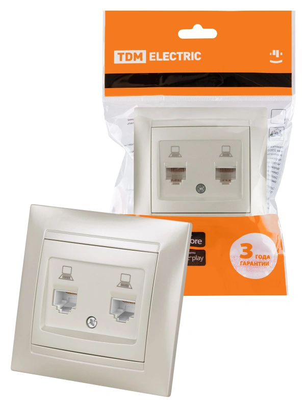 Розетка компьютерная двойная RJ45 перламутр "Лама" TDM