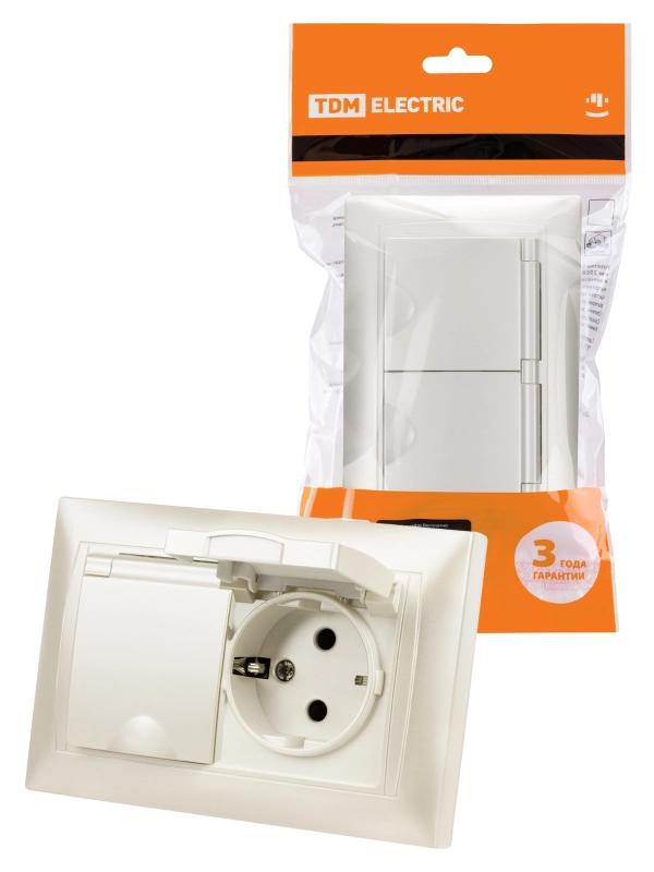 Розетка двойная 2П+З 16А 250В IP44 с защ. шт. с крышкой перламутр "Лама" TDM