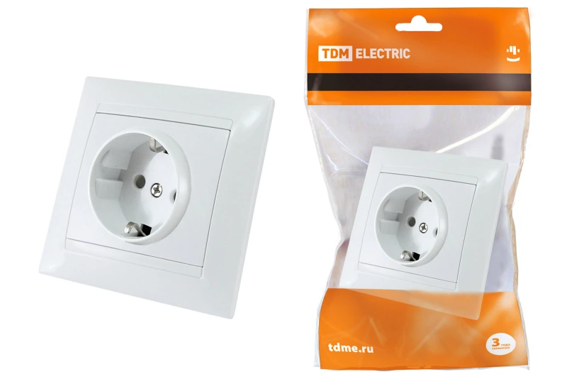 Розетка 2П+З 16А 250В с защ. шт. белая "Лама" TDM