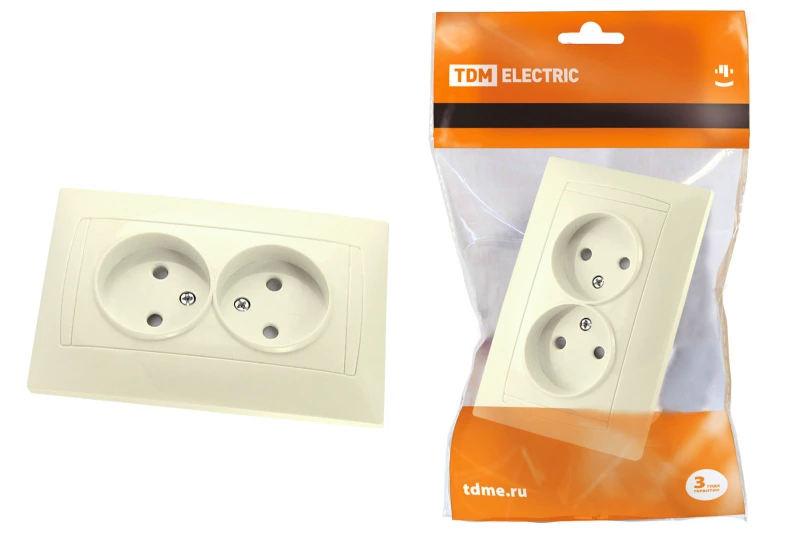 Розетка электрическая TDM со шторками без заземления двойная (Слоновая кость)