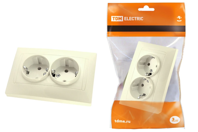 Розетка электрическая TDM со шторками двойная (Слоновая кость)