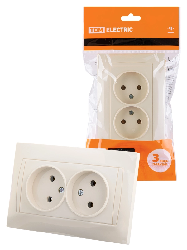 Розетка электрическая TDM без заземления двойная (Слоновая кость)