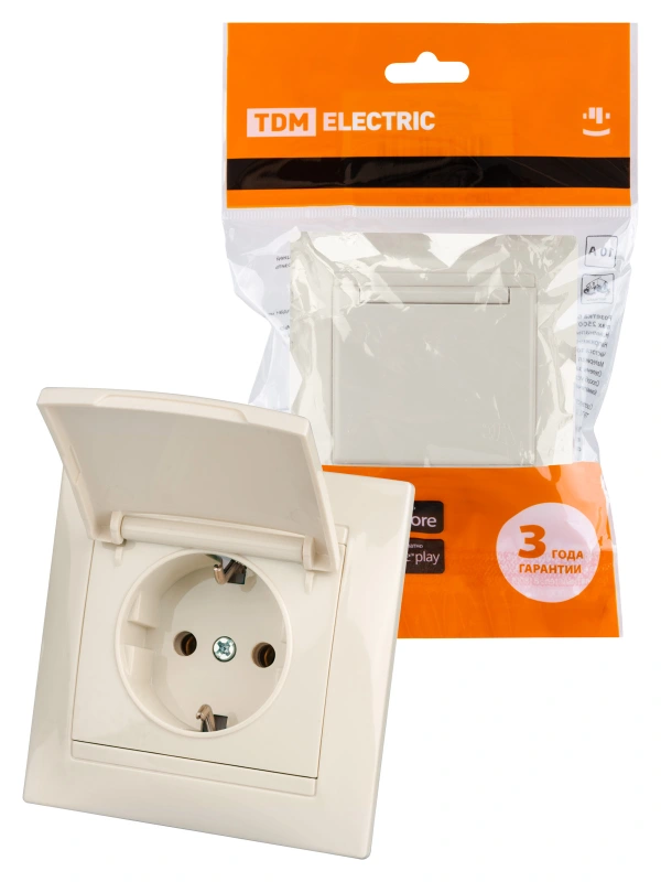 Влагозащищенная розетка электрическая IP44 TDM с откидной крышкой с рамкой (Слоновая кость)