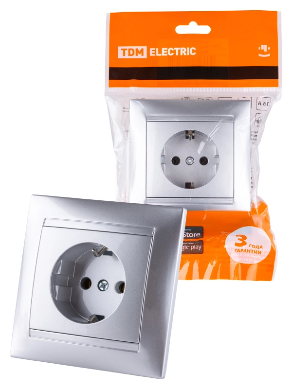Розетка 2П+З 16А 250В серебр. металлик "Лама" TDM