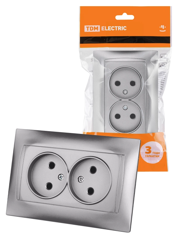 Розетка электрическая TDM без заземления двойная (Серебристый металлик)