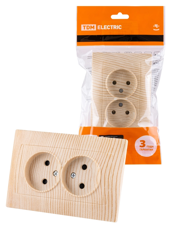 Розетка электрическая TDM со шторками без заземления двойная (Сосна)