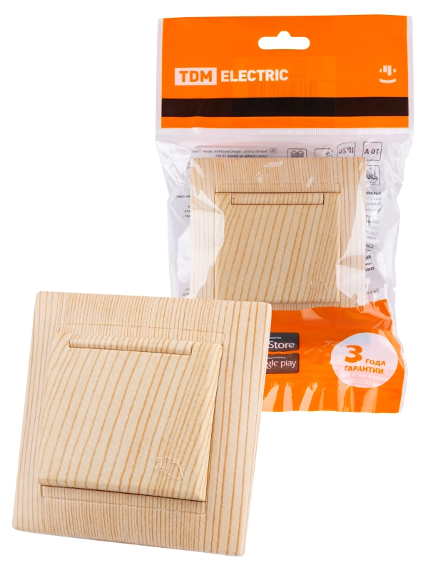 Влагозащищенная розетка электрическая IP44 TDM со шторками с откидной крышкой с рамкой (Сосна)