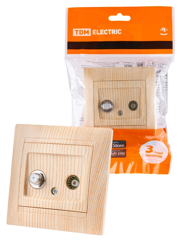 Розетка TV ("мама") + SAT (F-разъем) 0-2400МГц сосна "Лама" TDM