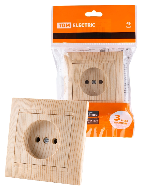 Розетка электрическая TDM без заземления с рамкой (Сосна)