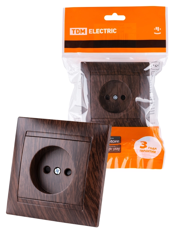 Розетка электрическая TDM со шторками без заземления с рамкой (Венге)