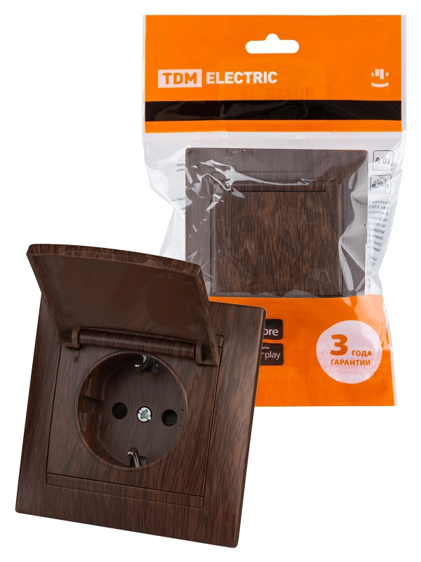Влагозащищенная розетка электрическая IP44 TDM со шторками с откидной крышкой с рамкой (Венге)