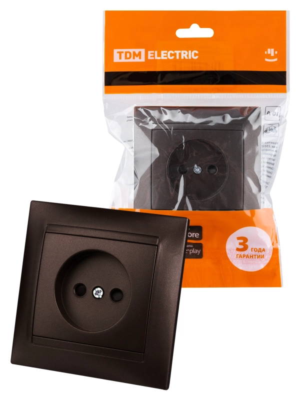 Розетка электрическая TDM со шторками без заземления с рамкой (Шоколад)