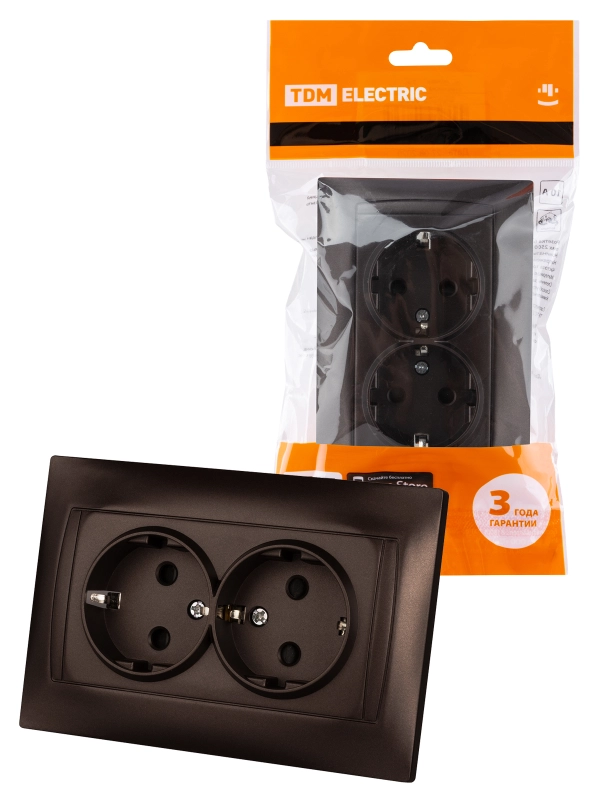 Розетка электрическая TDM со шторками двойная (Шоколад)