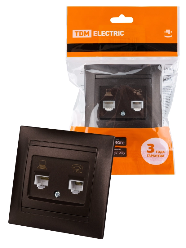 Розетка телефонная RJ11 + компьютерная RJ45 шоколад "Лама" TDM