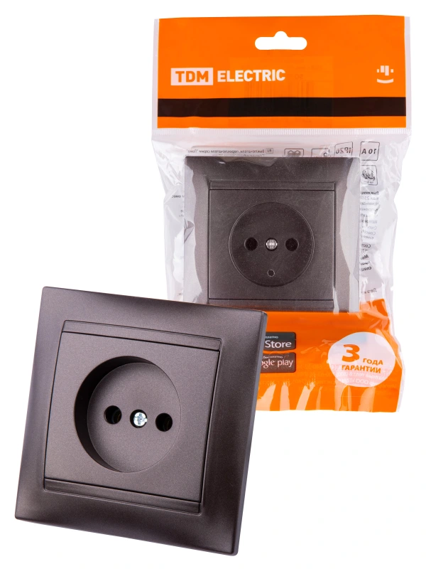 Розетка электрическая TDM без заземления с рамкой (Шоколад)