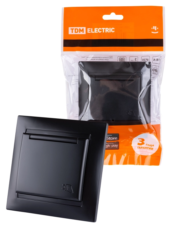 Влагозащищенная розетка электрическая IP44 TDM со шторками с откидной крышкой с рамкой (Графит)