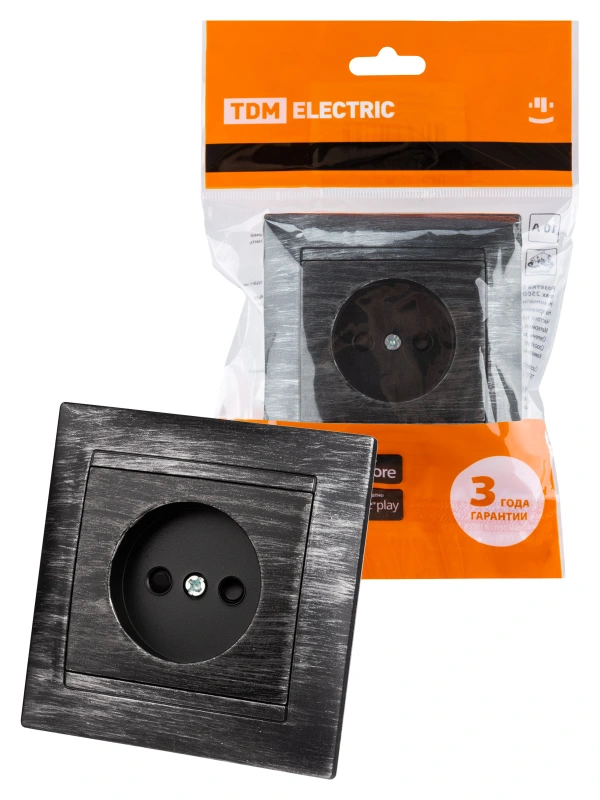 Розетка электрическая TDM со шторками без заземления с рамкой (Старинное серебро)