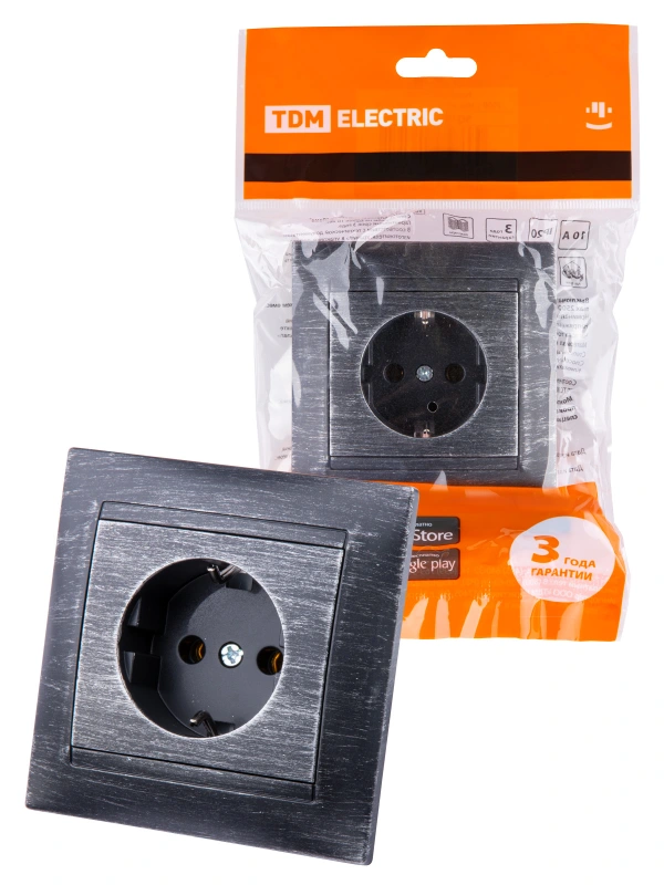 Розетка 2П+З 16А 250В старинное серебро "Лама" TDM