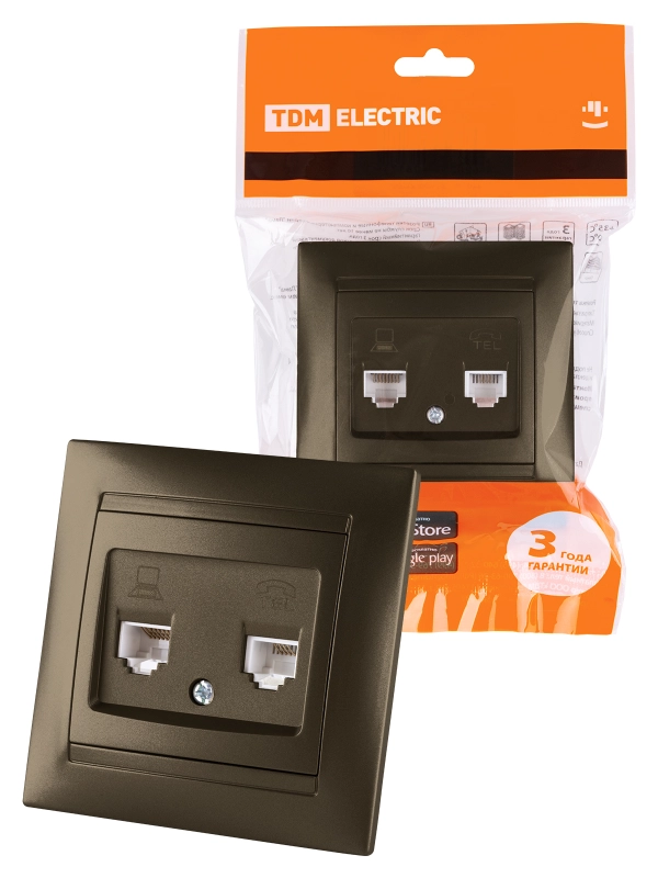 Розетка телефонная RJ11 + компьютерная RJ45 бронза "Лама" TDM
