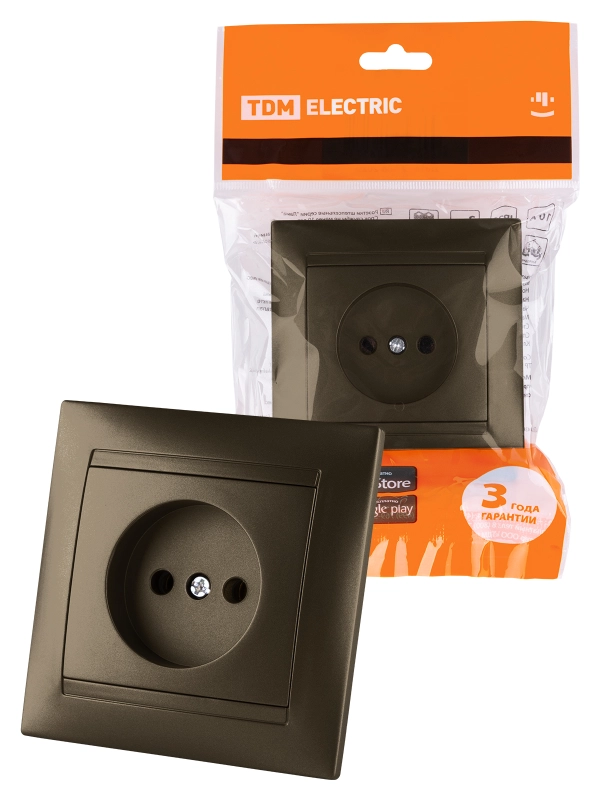 Розетка электрическая TDM без заземления с рамкой (Бронза)