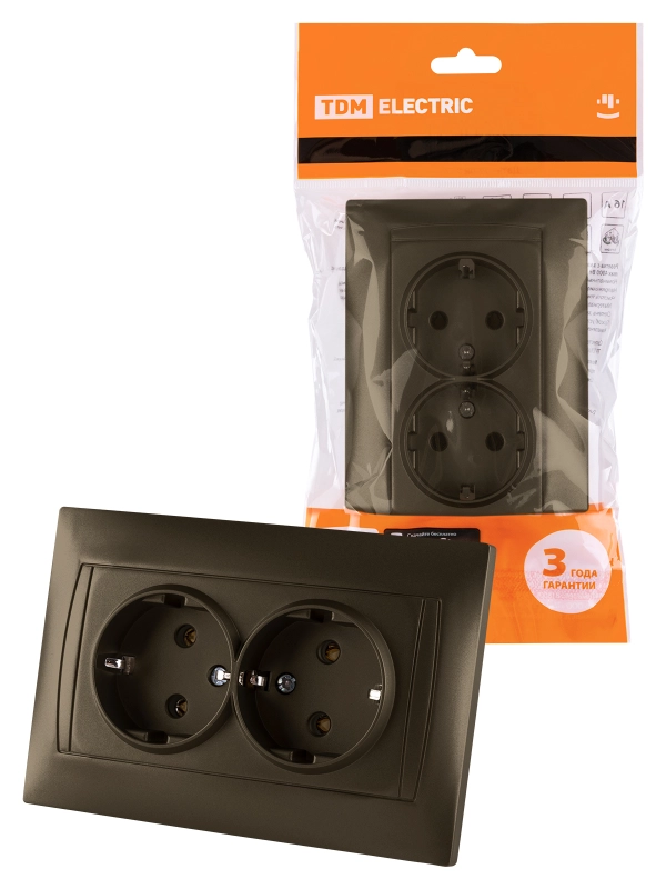Розетка электрическая TDM со шторками двойная (Бронза)