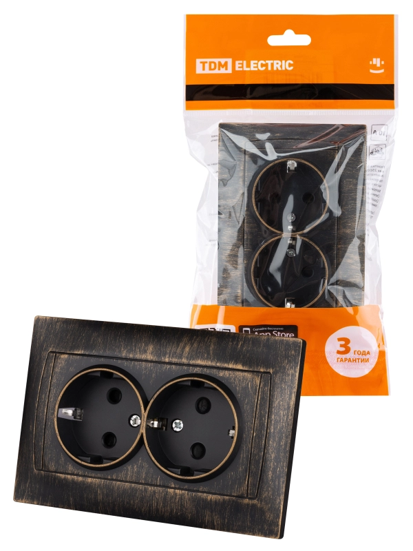 Розетка электрическая TDM со шторками двойная (Старинная бронза)