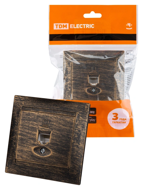 Розетка компьютерная RJ45 старинная бронза "Лама" TDM