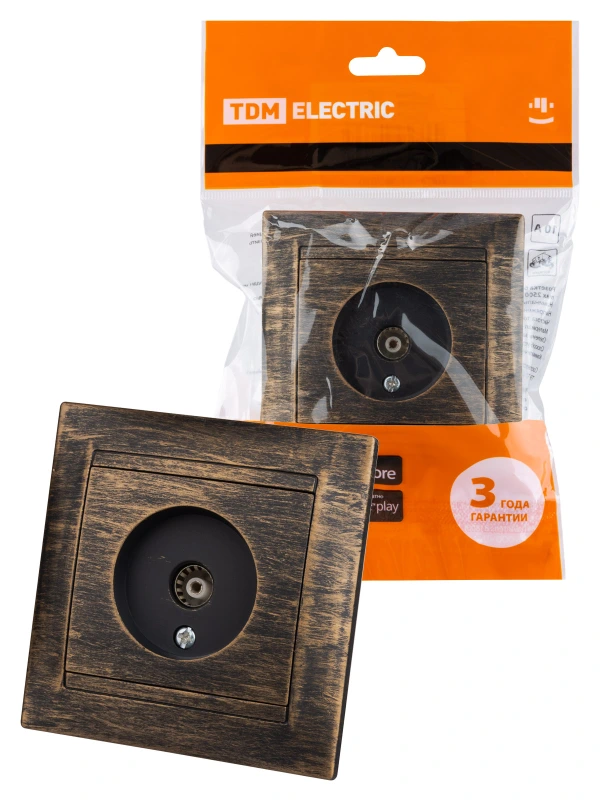 Розетка телевизионная простая (0-2400МГц, "мама") старинная бронза "Лама" TDM