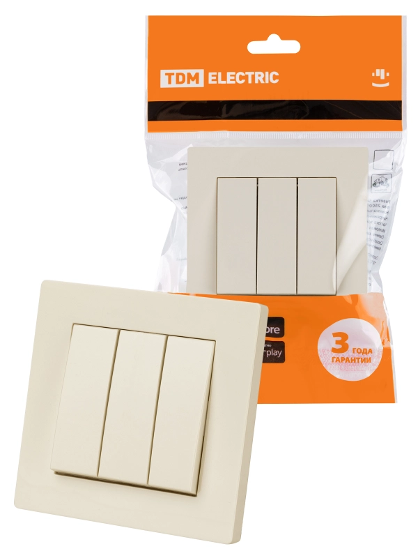 Выключатель 3-х кл. 10А сл. кость "Сенеж" TDM