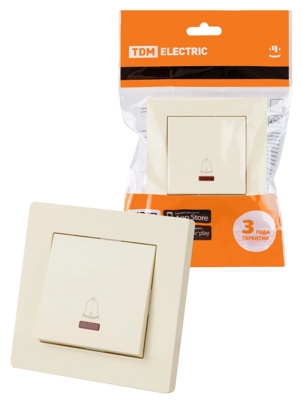 Кнопка звонка с подсветкой 6А сл. кость "Сенеж" TDM