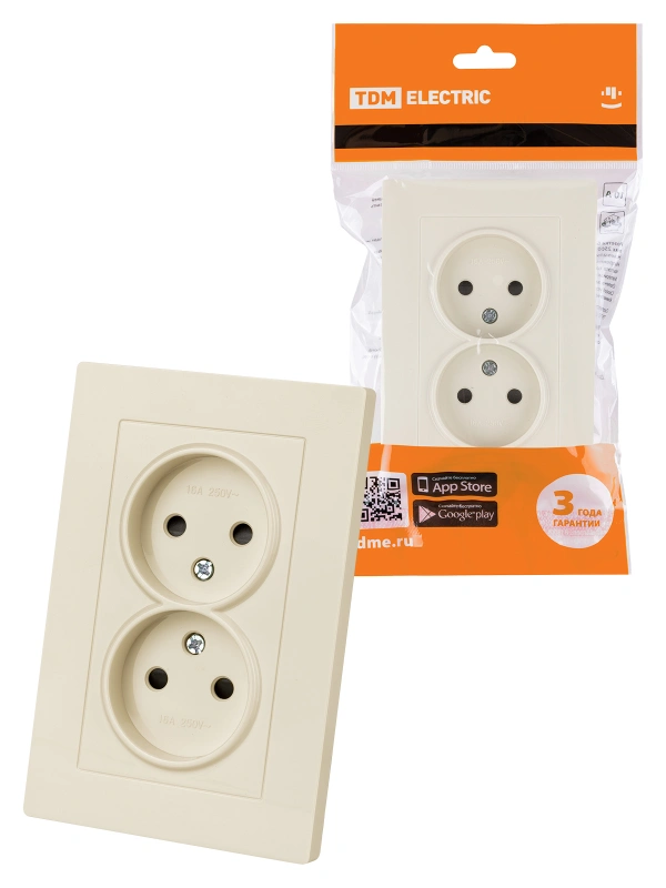 Розетка двойная 2П 10А 250В с защ. шт. сл. кость "Сенеж" TDM