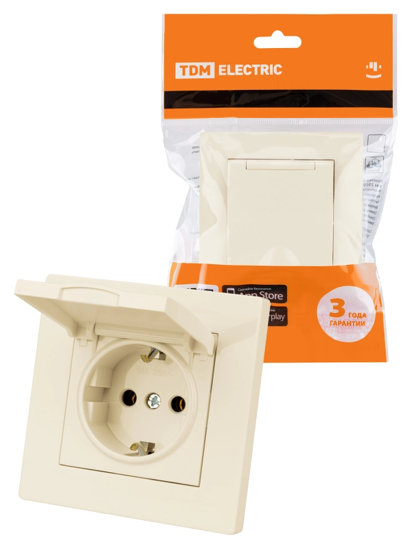 Розетка 2П+З 16А 250В IP44 с крышкой сл. кость "Сенеж" TDM