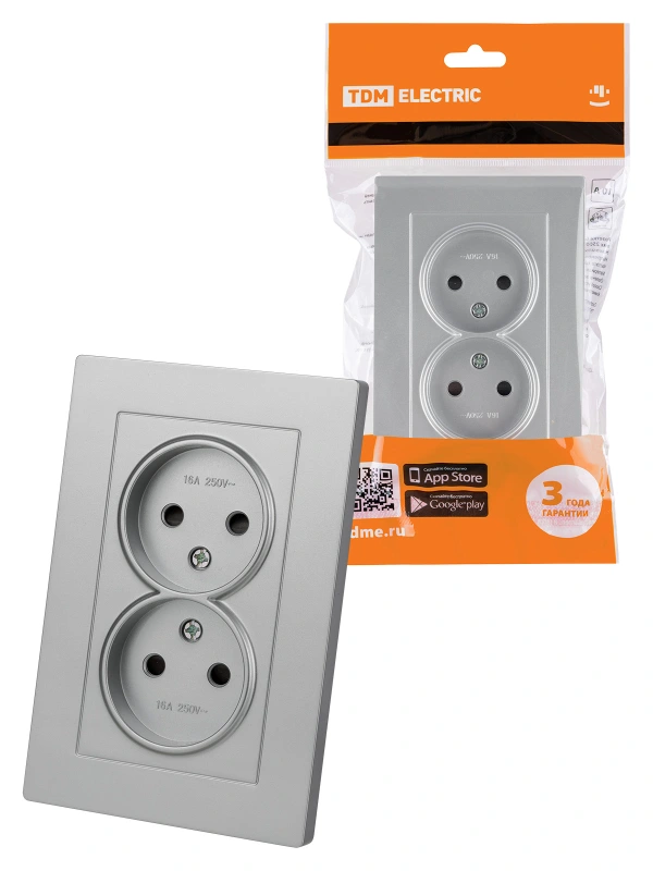Розетка двойная 2П 10А 250В с защ. шт. серебр. металлик "Сенеж" TDM