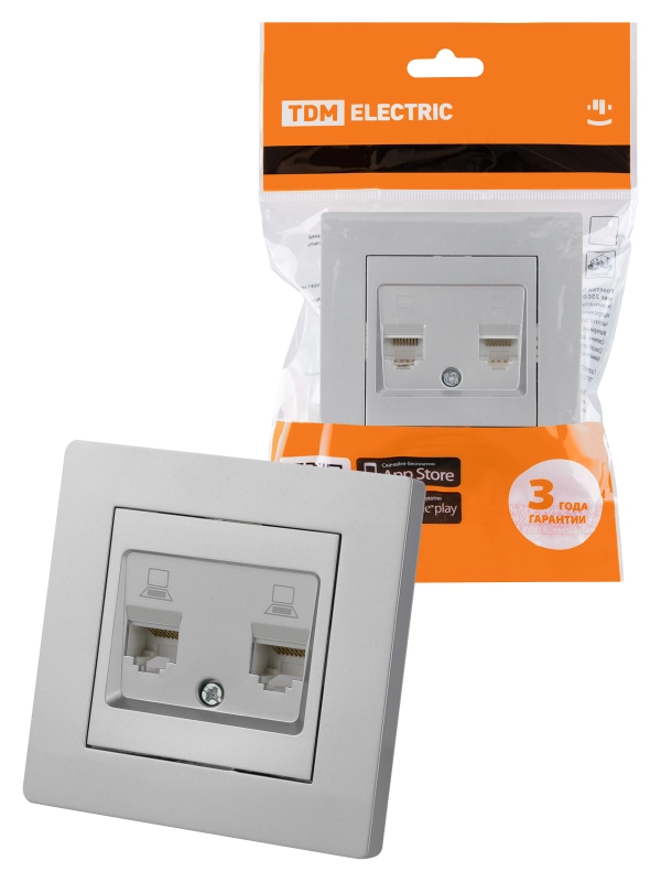 Розетка компьютерная двойная RJ45 серебр. металлик "Сенеж" TDM