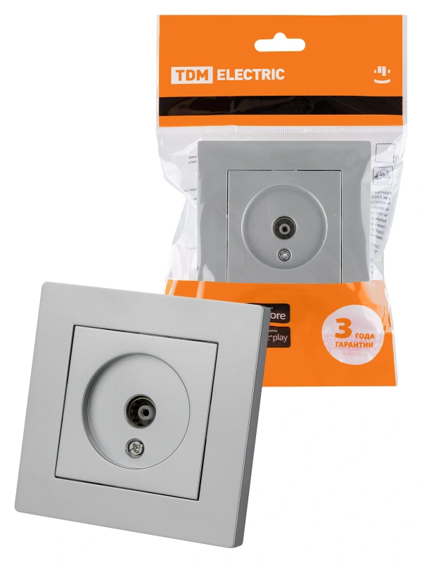 Розетка телевизионная простая (0-2400МГц, "мама") серебр. металлик "Сенеж" TDM