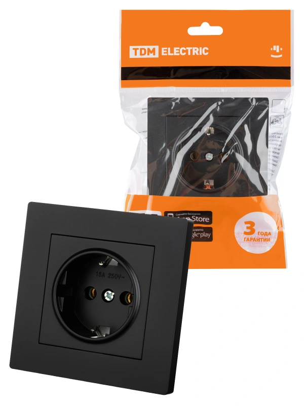Розетка 2П+З 16А 250В черная "Сенеж" TDM