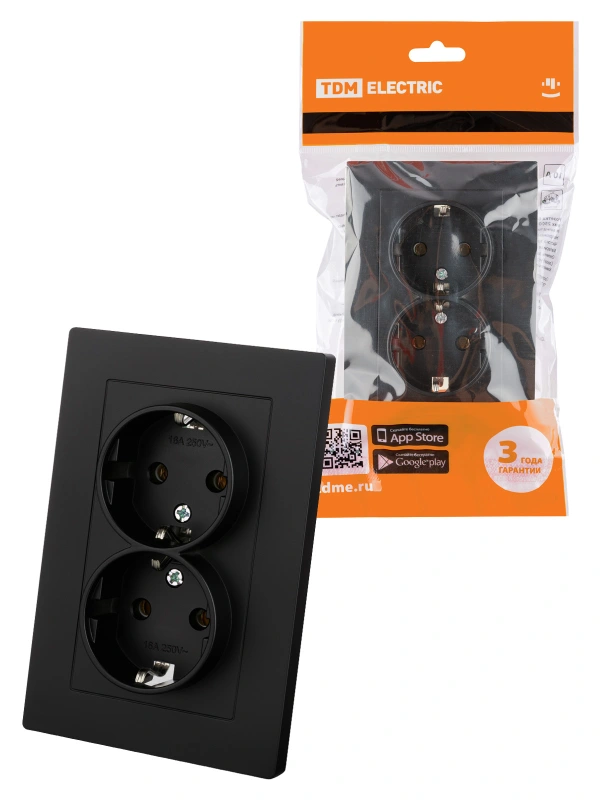 Розетка двойная 2П+З 16А 250В черная "Сенеж" TDM