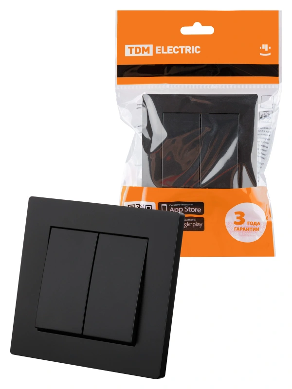 Выключатель 2-х кл. 10А черный "Сенеж" TDM