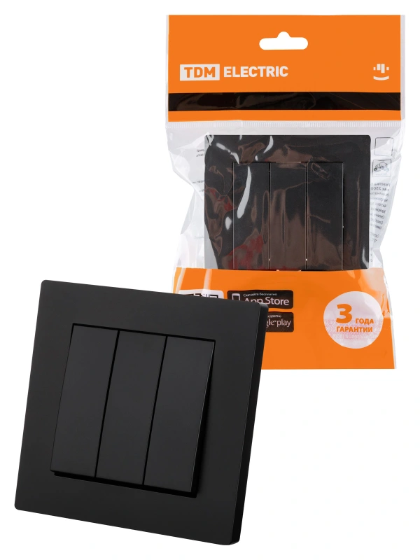 Выключатель 3-х кл. 10А черный "Сенеж" TDM